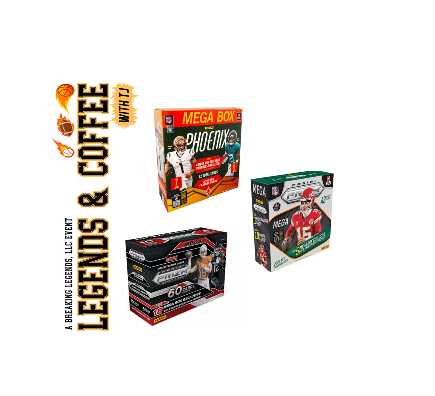 BRB - 31551 - (3) BOX PYT BREAK - (1) 2025 Phoenix Football Megas (1) 2025 Phoenix Mega & (1) 2025 Prizm Draft Picks Mega! Hunt rooks & SSPs! - T